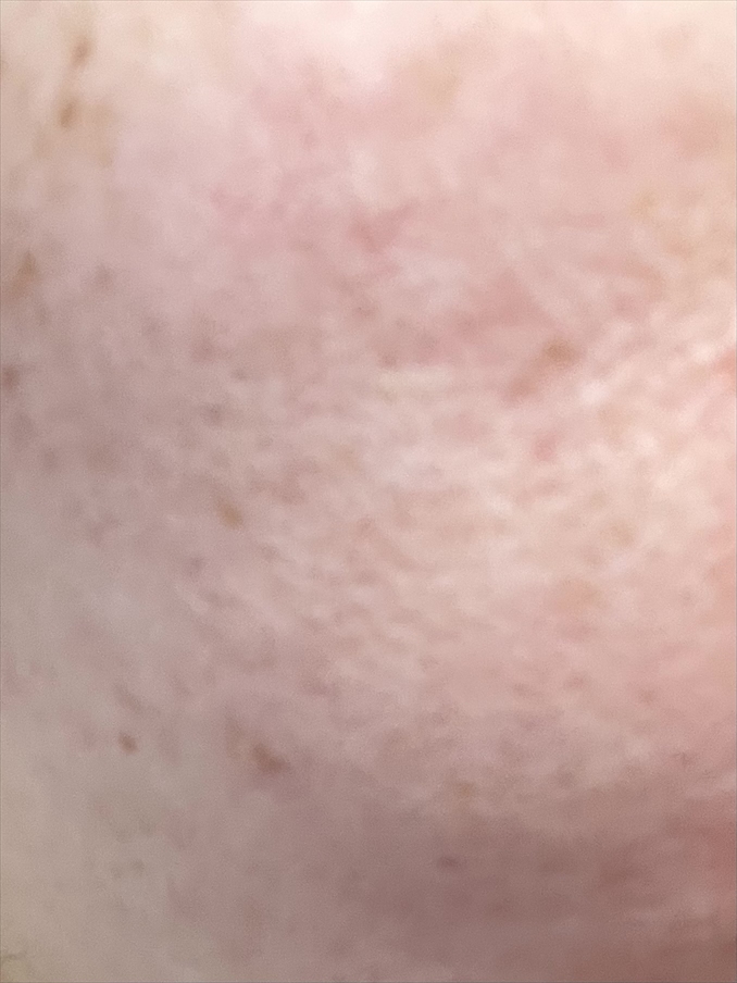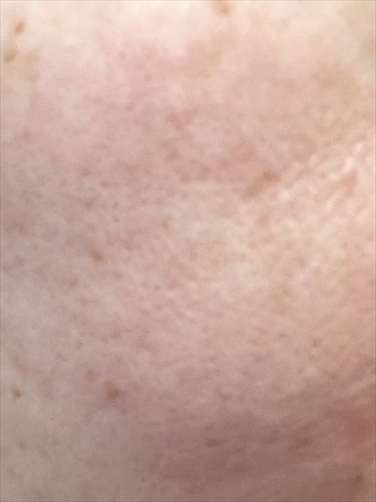 それでは使用前と使用後、全くの未加工でiPhoneで撮った画像になりますが、比較するとこんな感じになりました。※ニキビや吹き出物はないのですが、ニキビ跡で赤みが残った状態の肌での比較です。シミが多い肌で申し訳ないです…。