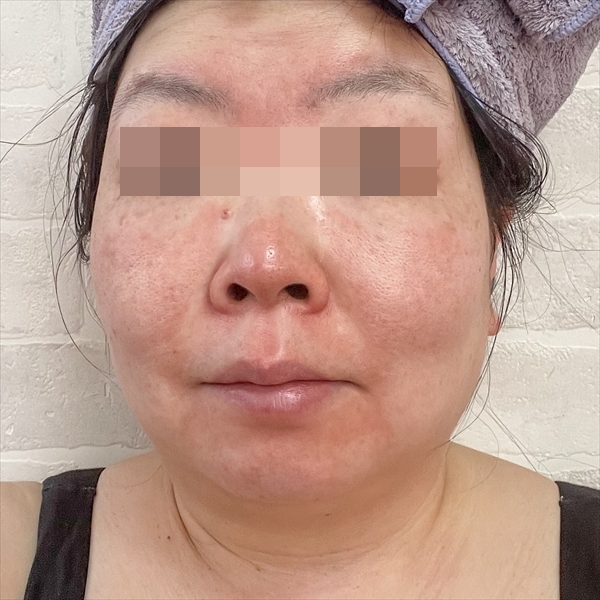 画像は目元のモザイク以外はすべて無加工(撮った時間帯が少し違うので光の加減で少し色味は違うかもしれません)、同じ場所で撮っています。ちゃんと違いがわかるようにおでこも出しています。(左はお風呂上がりなのもあってタオルで巻いていますw)
